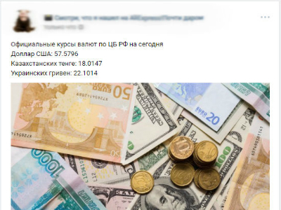 Публикация поста с актуальными курсами валют на сегодня